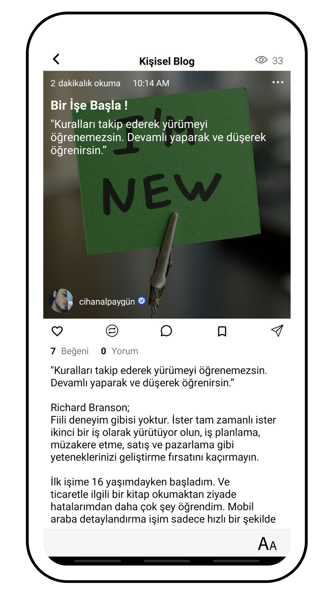 Devamını OkuCihan Alp Aygün tarafından blog ve makale yazarlığı üzerine kurulmuş bir “sosyal medya” uygulamasıdır.Yeni nesil yazarlık...