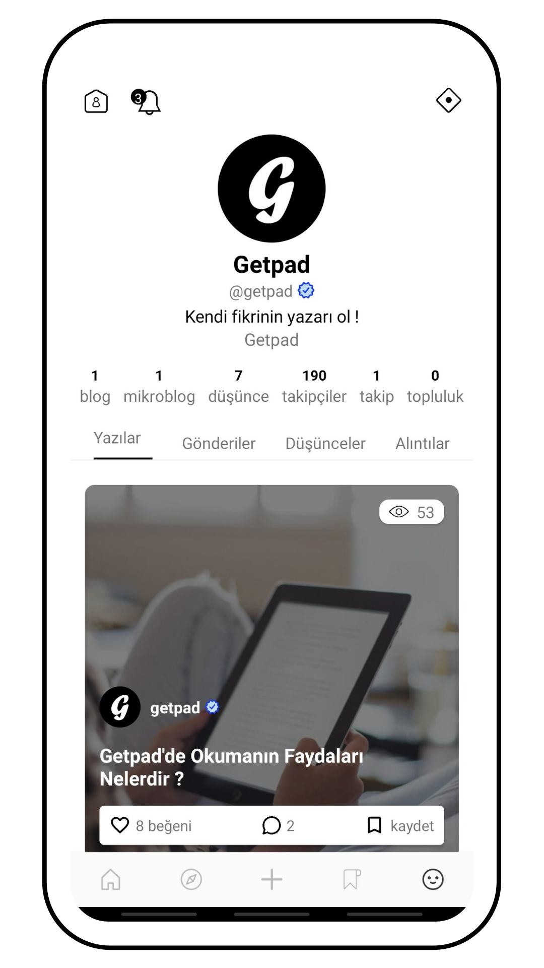 Binlerce üyesi ile en iyi Getpad deneyimi ve okur yazar, sizleri bekliyor.